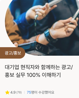 전 도움이 많이 되었기 때문에 광고/홍보 직무를 고민하는 분들이라면 한 번 수강해보는 것을 추천드립니다!!